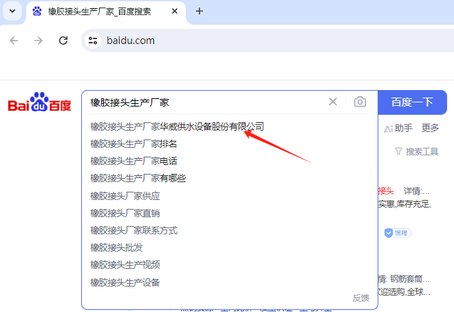 通过搜索引擎(如百度、搜狗、360、bing、国外谷歌等,天眼查、企查查等)输入关键词“橡胶接头生产厂家”,可以找到许多相关的生产厂家。例如,搜索结果中提到了一些知名的橡胶接头生产厂家,如下图展示的结果:橡胶接头生产厂家华威供水设备股份有限公司。